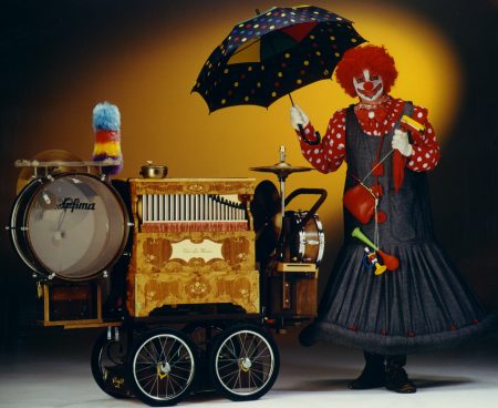 Bei Stadt-, Dorf-, Straßenfesten und anderen Großveranstaltungen ist Drehorgel- Clown Ullrico in seinem Element. Hier agiert er in